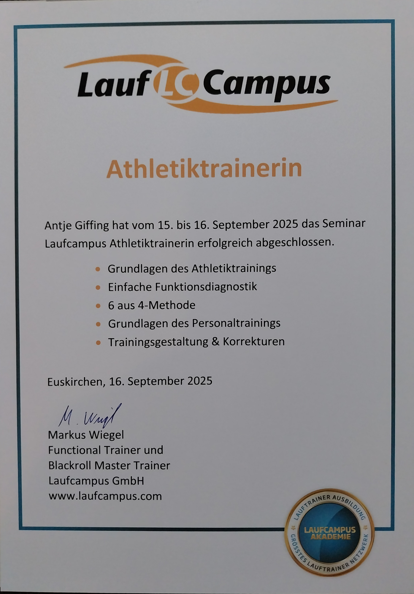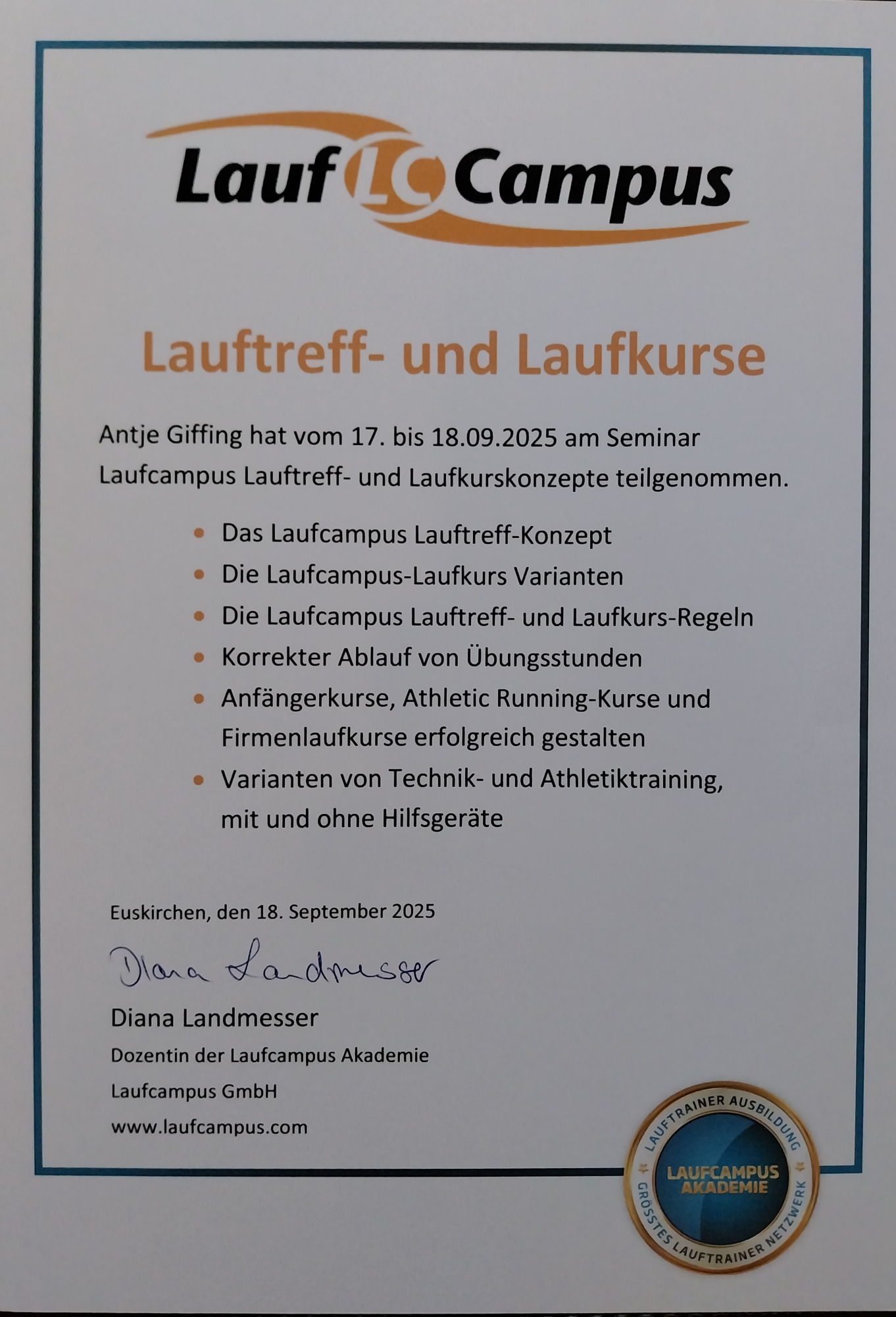 - Meine fundierte Ausbildung zur Lauftrainerin nach der Laufcampusmethode mit Fokus auf: